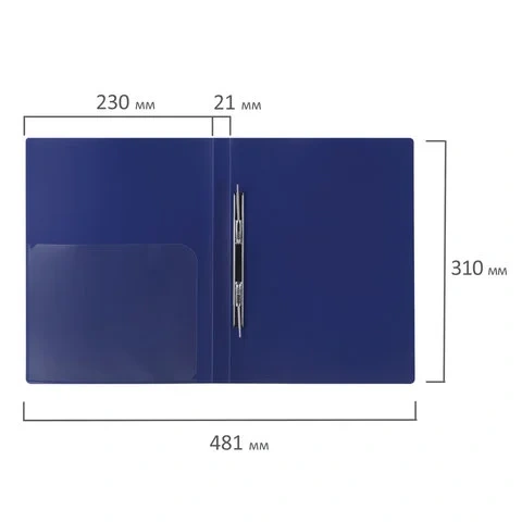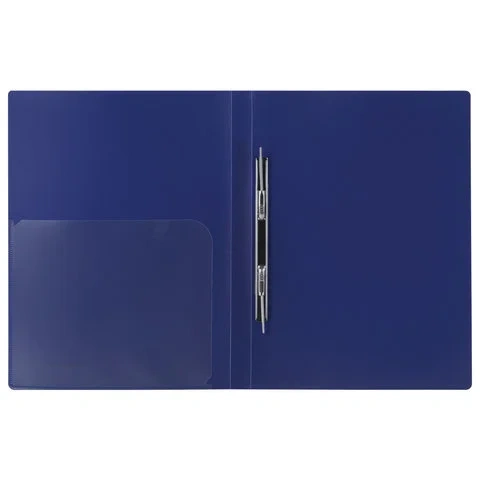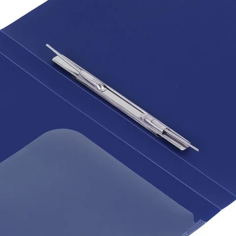 Изготовлена из высококачественного пластика темно-синего цвета толщиной 0,6 мм с оригинальной диагональной фактурой. Обеспечивает хранение до 100 листов формата А4. Металлический скоросшиватель с пружинным механизмом обеспечит надежную фиксацию документов. Кроме того, папка снабжена прозрачным внутренним карманом. Для идентификации имеется бумажный корешок. Поставляется в индивидуальной упаковке.