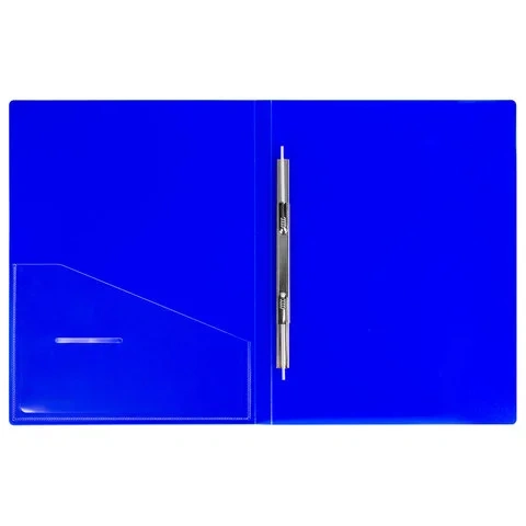 Изготовлена из высококачественного пластика синего неонового цвета толщиной 0,7 мм с фактурой 'песок'. Обеспечивает хранение до 100 листов формата А4. Металлический скоросшиватель с пружинным механизмом обеспечит надежную фиксацию документов. Кроме того, папка снабжена прозрачным внутренним карманом. Для идентификации имеется бумажный корешок. Поставляется в индивидуальной упаковке.