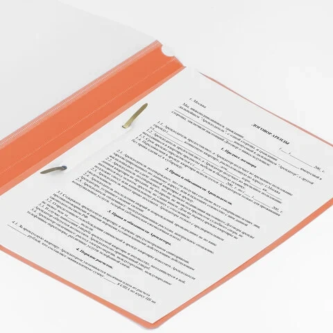 Фиксирует до 100 листов формата А4. Толщина пластика для верхнего листа - 130 мкм, для нижнего - 180 мкм. Предельно простой механизм подшивки: металлические усики и пластиковая планка для надежной фиксации документов. Скоросшиватель изготовлен из полипропилена. Снабжен прозрачным верхним листом. Для идентификации имеет сменный пластиковый корешок. Благодаря фактуре 'песок' и насыщенному оранжевому цвету обложки важная папка никогда не затеряется на полке.