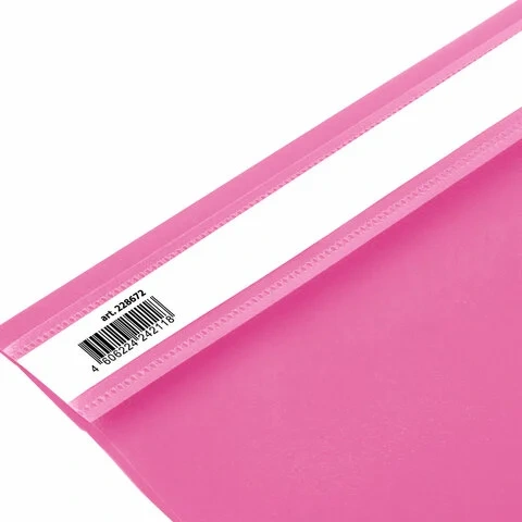 Фиксирует до 100 листов формата А4. Толщина пластика верхнего листа составляет 130 мкм, а нижнего - 180 мкм. Предельно простой механизм подшивки: металлические усики и пластиковая планка для надежной фиксации документов. Скоросшиватель изготовлен из качественного полипропилена. Прозрачный верхний лист позволяет определить содержимое, не открывая скоросшиватель, который к тому же снабжен сменным пластиковым корешком, что дает возможность структурировать информацию. Благодаря фактуре 'песок' и яркому розовому цвету обложки ваша папка никогда не затеряется на полке.