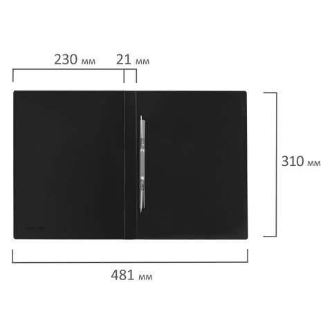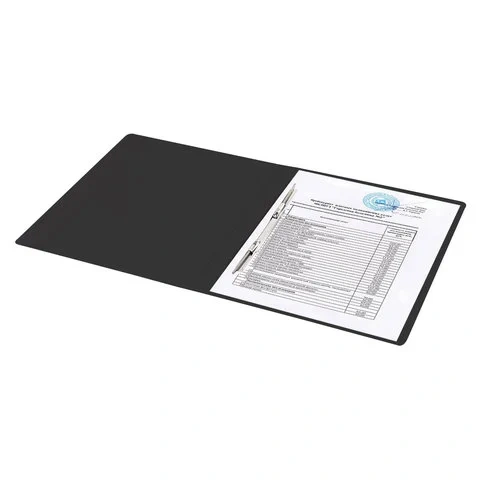 Изготовлена из высококачественного пластика черного цвета толщиной 0,6 мм с фактурой 'песок'. Обеспечивает хранение до 100 листов формата А4. Металлический скоросшиватель с пружинным механизмом обеспечит надежную фиксацию документов. Для идентификации папки имеется бумажный корешок. Поставляется в индивидуальной упаковке.