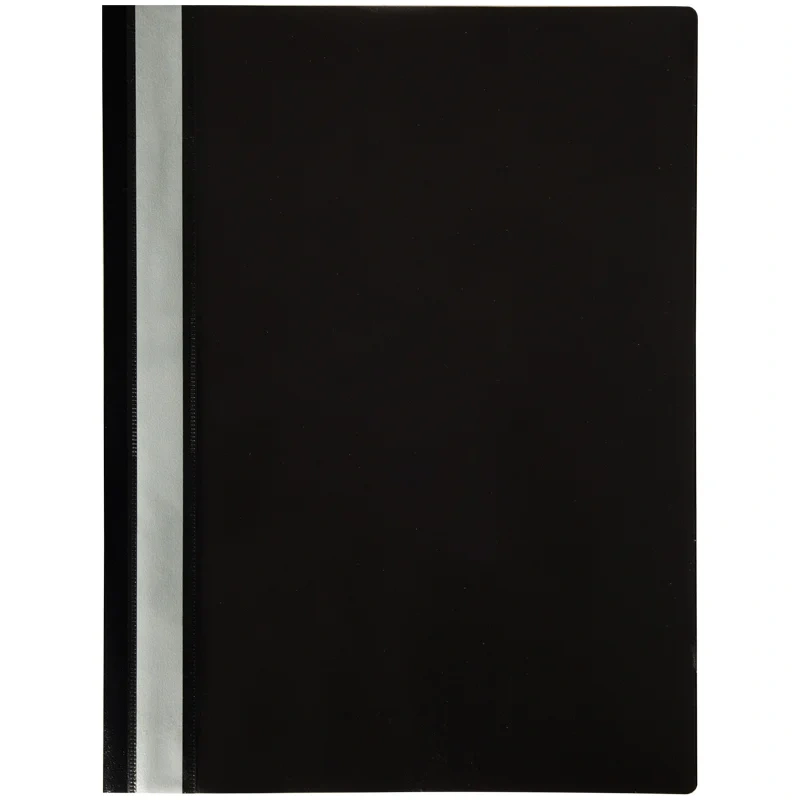 Папка-скоросшиватель OfficeSpace, формата А4, изготовлена из пластика толщиной 120мкм, черного цвета. Предназначена для хранения, транспортировки и систематизации документов формата А4. Защищает документы от пыли и влаги и прочих повреждений. Прозрачный верхний лист позволяет предварительно просматривать документы не открывая папку. Папка снабжена универсальной перфорацией. В ассортименте яркие офисные цвета.