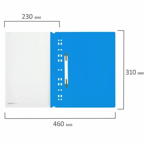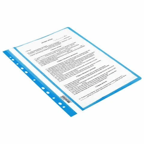 Прозрачный верхний лист позволяет идентифицировать подшитый документ, не открывая скоросшиватель. Сменный пластиковый корешок помогает структурировать информацию. Благодаря фактуре 'песок' и яркому синему цвету обложки папка никогда не затеряется на полке.