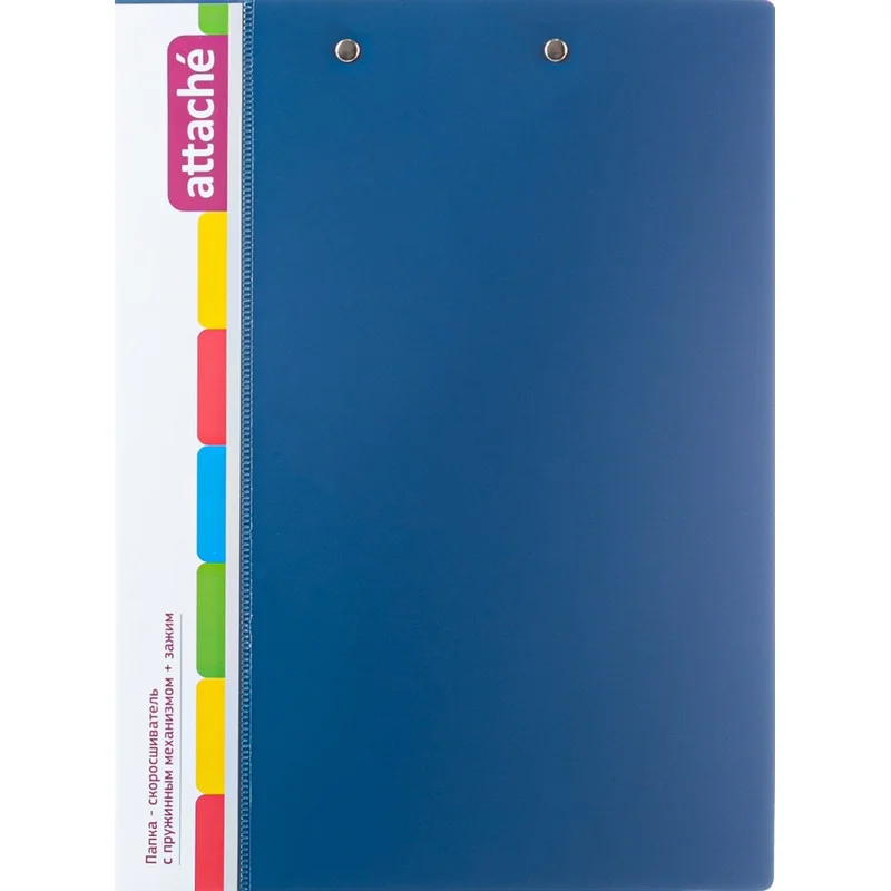 Скоросшиватель пластиковый с пружин.мех.+зажим Attache,0.7 мм, синий