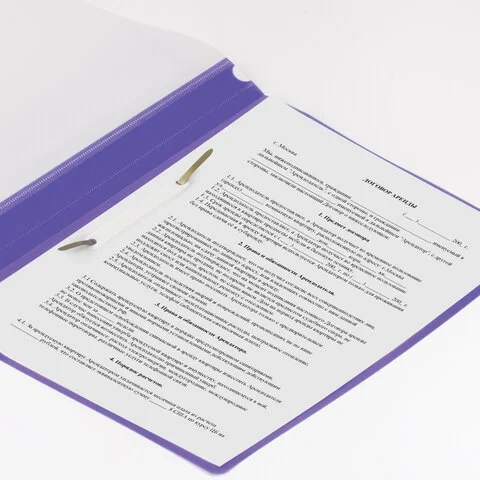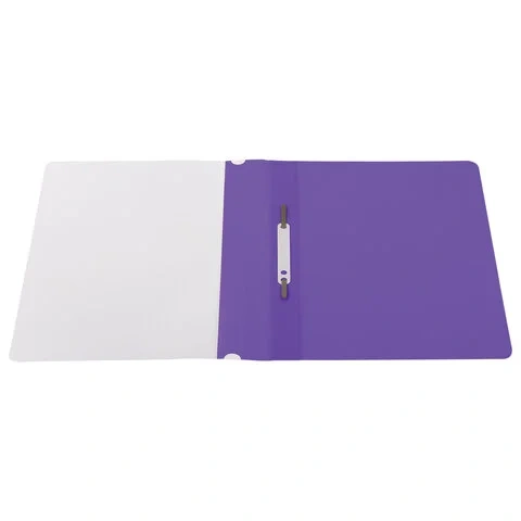 Фиксирует до 100 листов формата А4. Толщина пластика верхнего листа составляет 100 мкм, а нижнего - 120 мкм. Предельно простой механизм подшивки: металлические усики и пластиковая планка для надежной фиксации документов. Скоросшиватель изготовлен из качественного полипропилена. Прозрачный верхний лист позволяет определить содержимое, не открывая скоросшиватель, который к тому же снабжен сменным пластиковым корешком, что дает возможность структурировать информацию. Благодаря гладкой фактуре и яркому фиолетовому цвету обложки папка никогда не затеряется на полке.