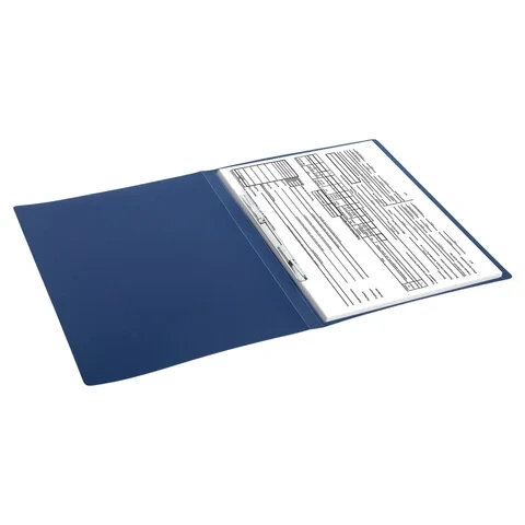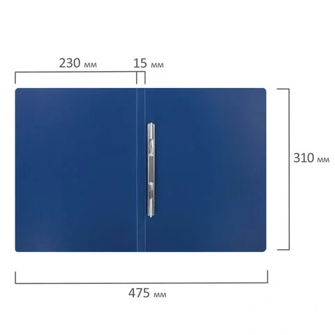 Фиксирует до 100 листов формата А4. Предельно надежный способ подшивки: металлические усики и пружинный механизм для крепкой фиксации документов. Скоросшиватель изготовлен из качественного пластика толщиной 500 мкм. Благодаря фактуре 'песок' и насыщенному синему цвету обложки папка никогда не затеряется на полке. Размер - 230х310 мм. Поставляется в индивидуальной упаковке.