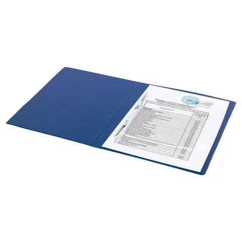 Изготовлена из высококачественного картона с ПВХ покрытием синего цвета. Обеспечивает хранение до 290 листов формата А4. Металлический скоросшиватель с пружинным механизмом обеспечит надежную фиксацию документов. Для идентификации папки имеется сменный бумажный корешок.