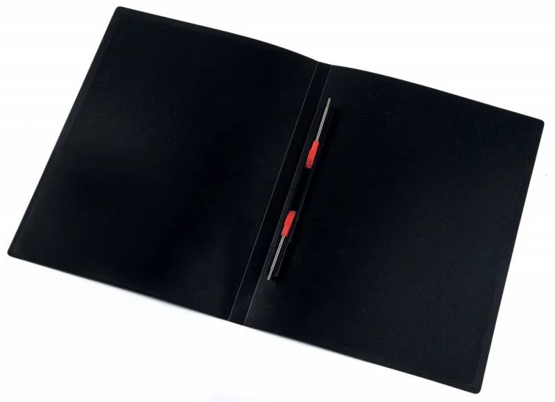 Папка с пластиковым пружинным скоросшивателем экономичной серии формата А4. Выполнена из пластика толщиной 0,4мм. Фактура – песок. Цвет черный.