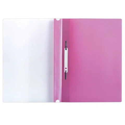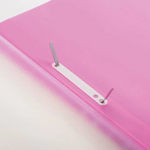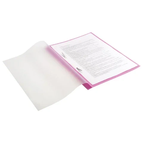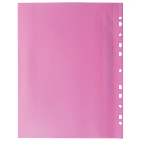 Фиксирует до 100 листов формата А4. Толщина пластика верхнего листа составляет 130 мкм, а нижнего - 180 мкм. Предельно простой механизм подшивки: металлические усики и пластиковая планка для надежной фиксации документов. Мультиперфорация по краю обложки позволяет подшивать изделие в папки с любым механизмом. Скоросшиватель изготовлен из качественного полипропилена. Прозрачный верхний лист позволяет определить содержимое, не открывая скоросшиватель, который к тому же снабжен сменным пластиковым корешком, что дает возможность структурировать информацию. Благодаря фактуре 'песок' и яркому розовому цвету обложки папка никогда не затеряется на полке.