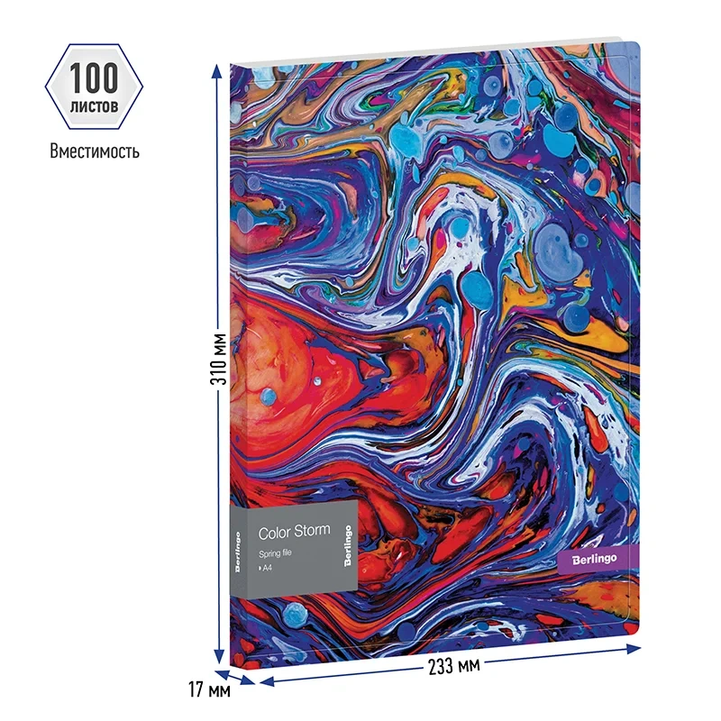 Папка с пружинным скоросшивателем Berlingo 'Color Storm', 17мм, 600мкм, с внутр. карманом, с рисунко