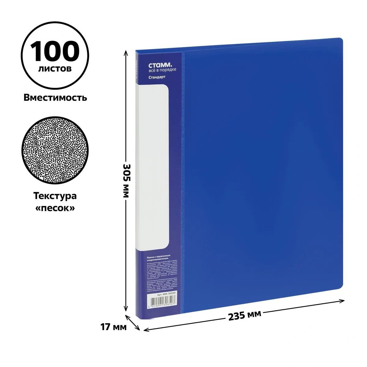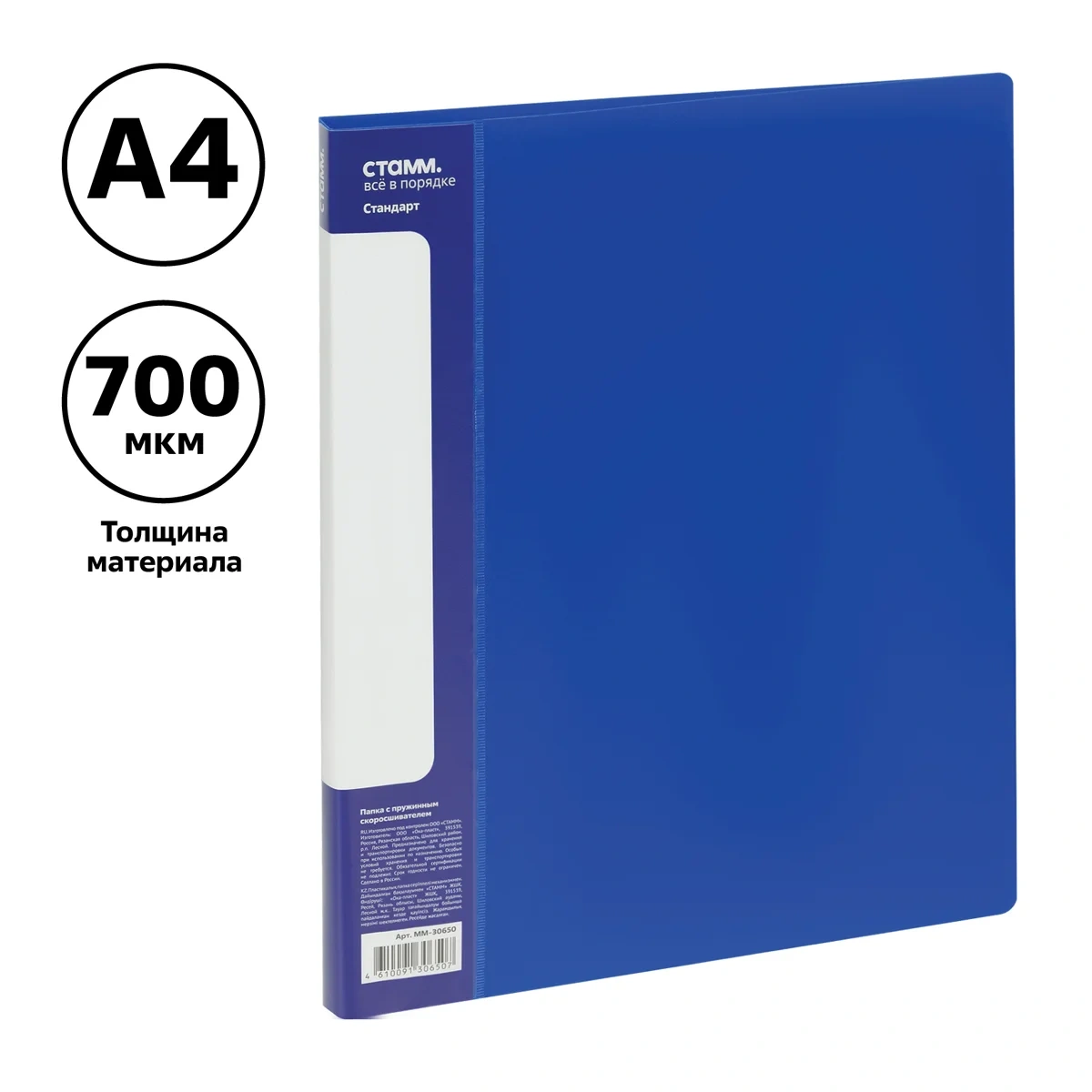 Папка с пружинным скоросшивателем СТАММ 'Стандарт' А4, 17мм, 700мкм, пластик, синяя