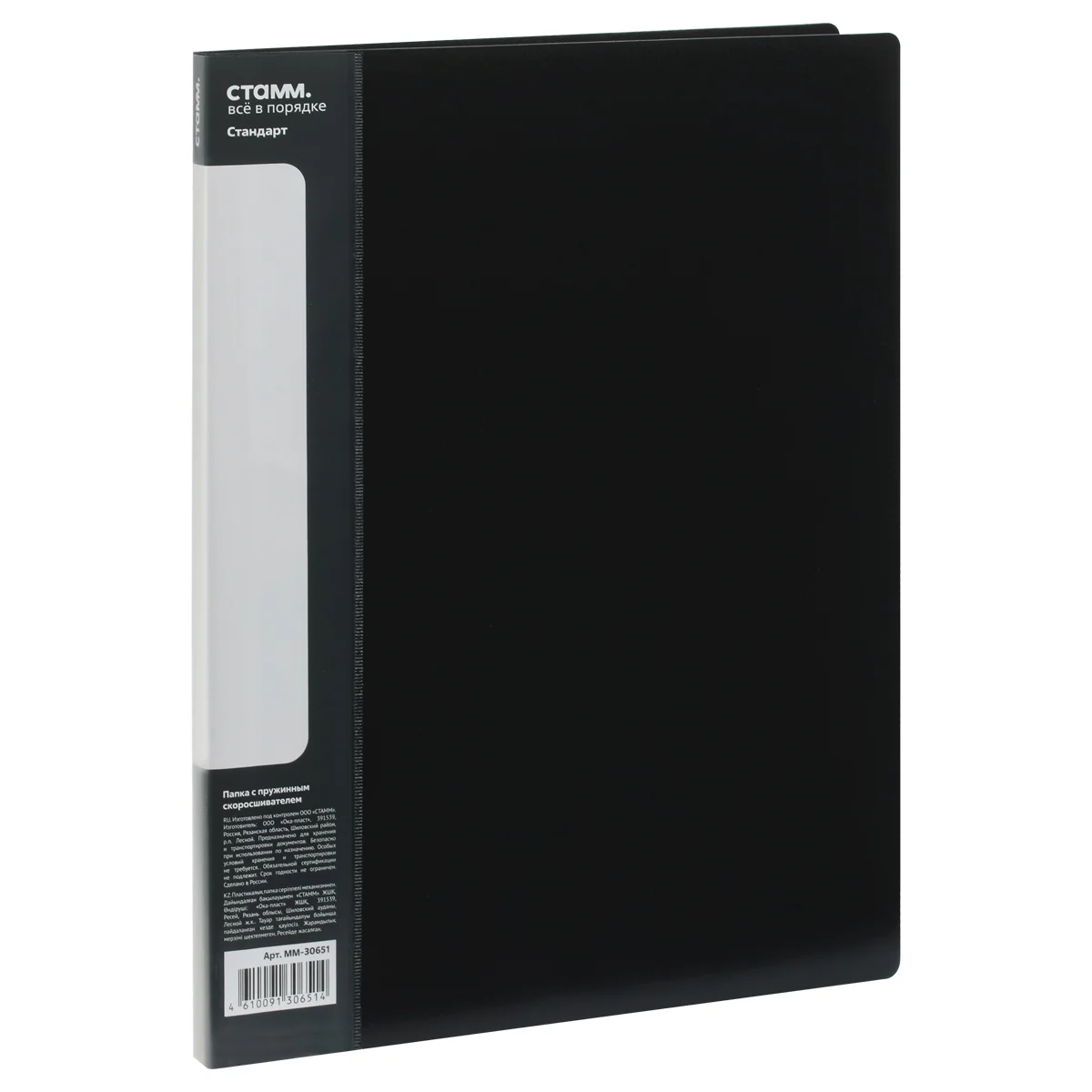 Папка с пружинным скоросшивателем СТАММ 'Стандарт' А4, 17мм, 700мкм, пластик, черная