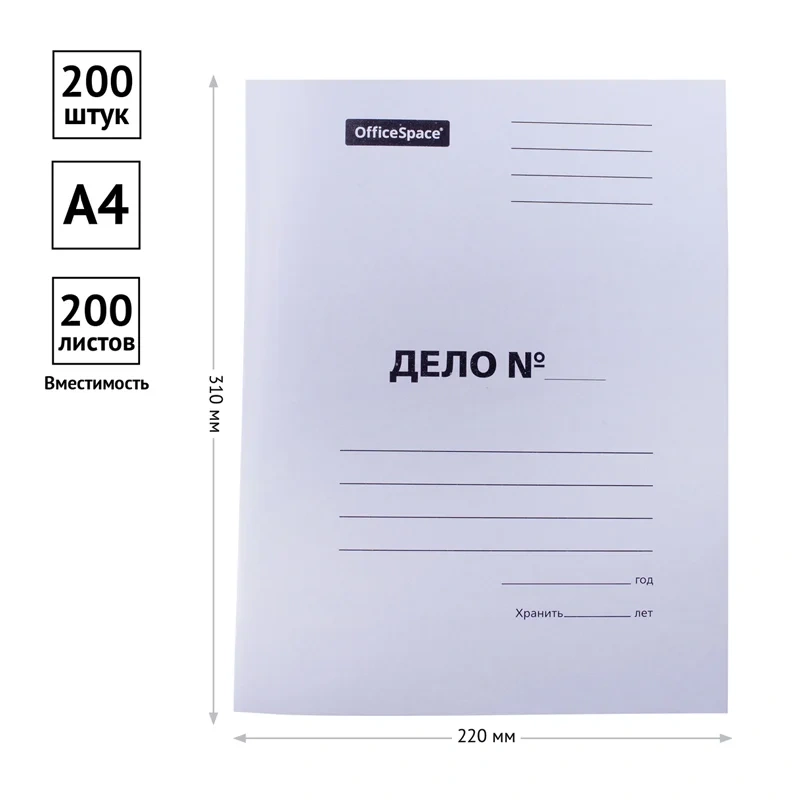 Скоросшиватель картонный Officespace Дело белая, А4, 220 г/м2, пробитая