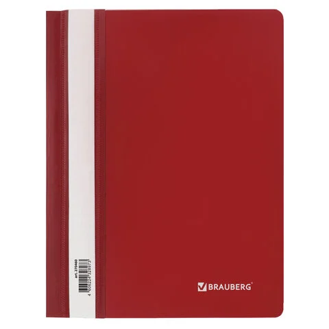 Скоросшиватель пластиковый МАЛОГО ФОРМАТА (160х228мм) А5 BRAUBERG, 130/180 мкм, красный, 270460