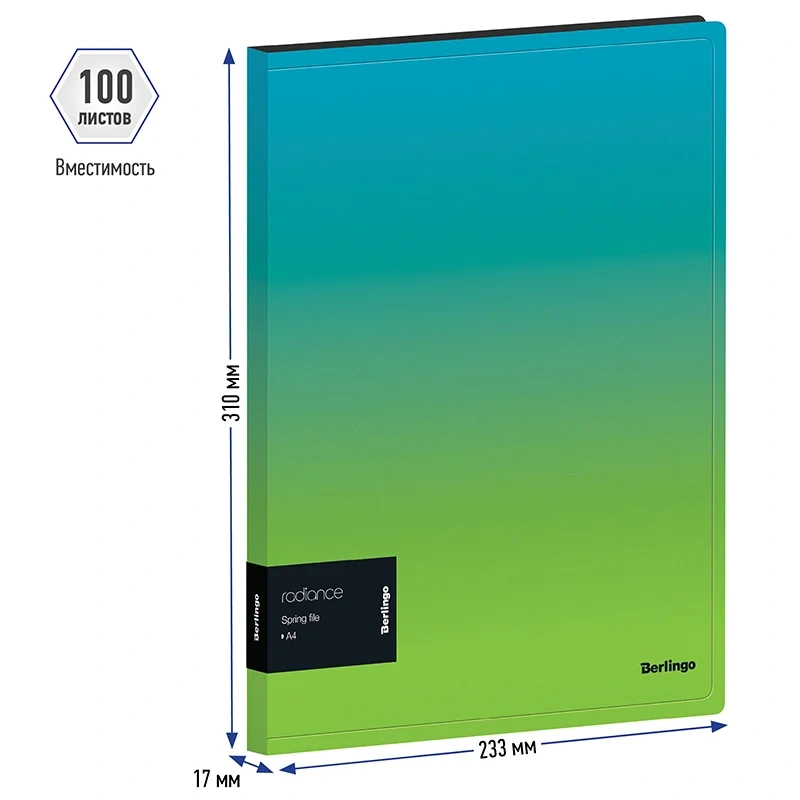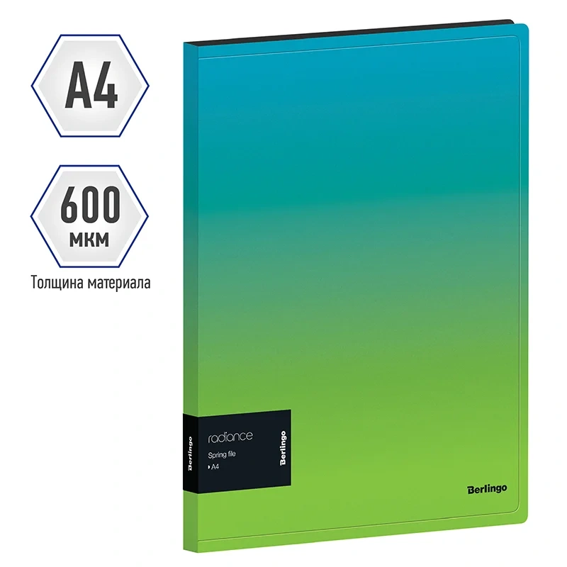 Папка с пружинным скоросшивателем Berlingo 'Radiance', 17мм, 600мкм, с внутр. карманом, голубой/зеле