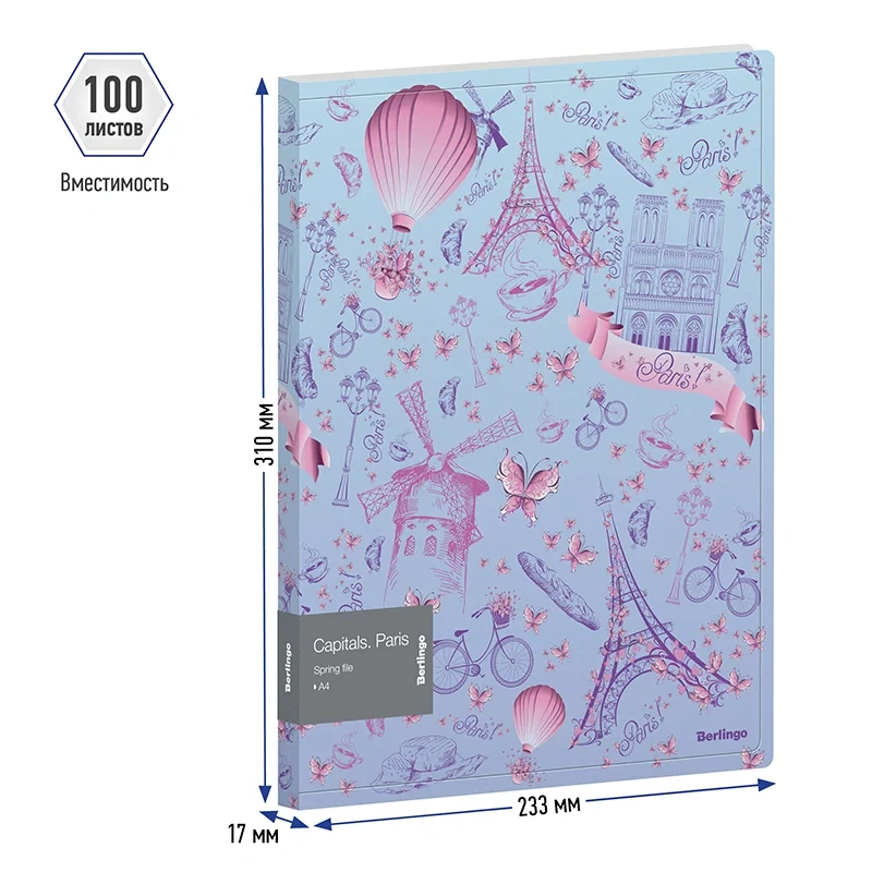 Папка с пружинным скоросшивателем Berlingo 'Capitals. Paris', 17мм, 600мкм, с внутр. карманом, с рис