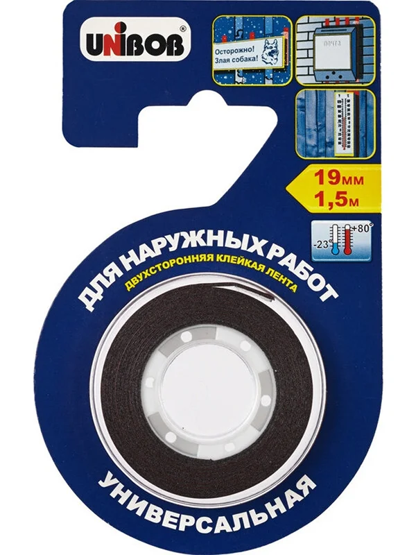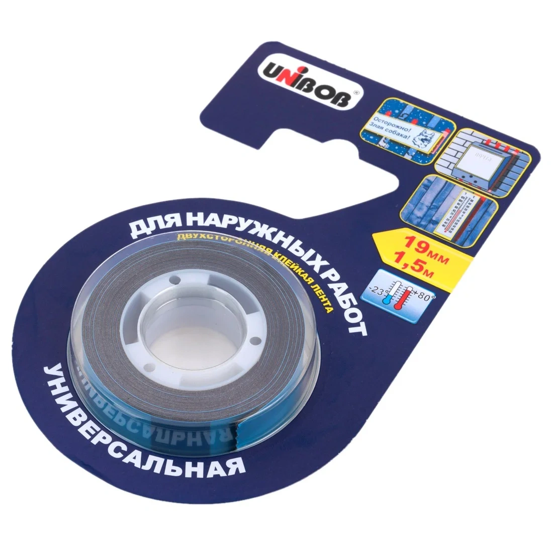 Лента клейкая Unibob двусторонняя для наружных работ, 19мм x 1.5м