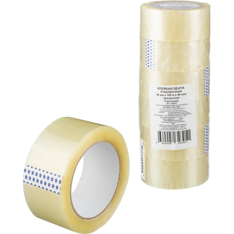 Клейкая лента упаковочная 48ммх100м, прозрачная, 40мкм, 6шт/уп