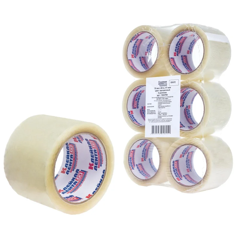 Клейкая лента упаковочная 75мм х 66м 47мкм прозрачная Россия 6 шт/уп