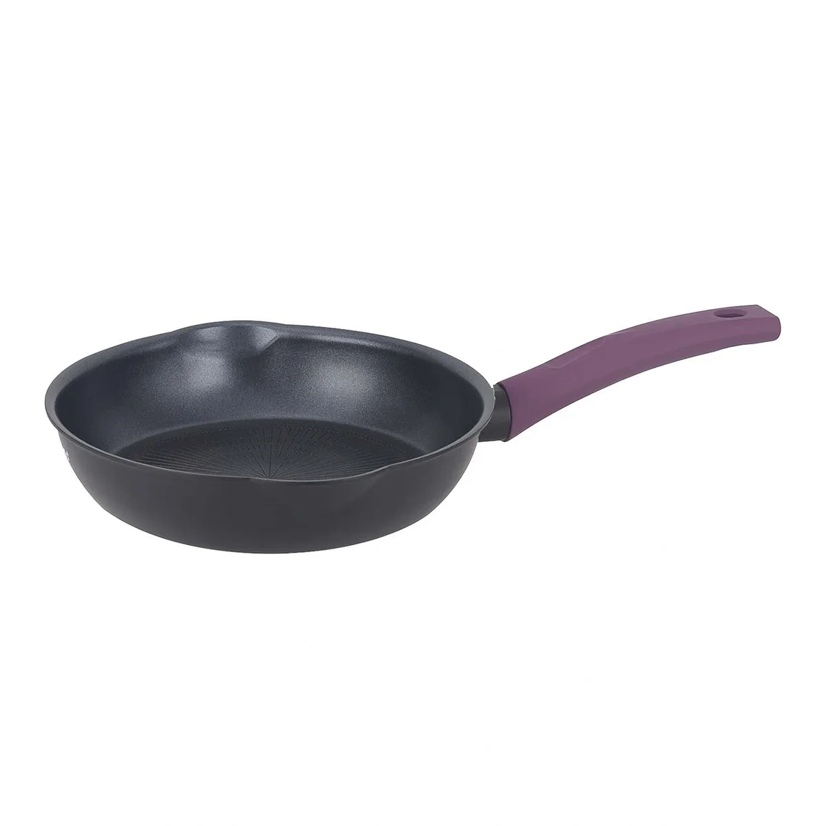 Коллекция сковород Baniano - это то, что поразит своим удобством! Высокие бортики, большая рабочая поверхность и носики для слива жидкости будут вам помогать в готовке. Двухслойное антипригарное покрытие Pfluon Cookmark порадует вас своей безопасностью, экологичностью и отсутствием вредной PFOA кислоты. Дно сковороды имеет рельефные полосы, благодаря которым масло при жарке будет распределяться равномерно, а при тушении появится эффект воздушной подушки. Продукты не будут пригорать. Сковорода окрашена в черный цвет, который надолго сохранит внешний вид, а ее ручка в темно-фиолетовый оттенок, напоминающий цвет баклажана. В коллекции сковороды диаметром от 18 до 28 см. Подходит для всех типов плит, в том числе индукционных. Можно мыть в посудомоечной машине.