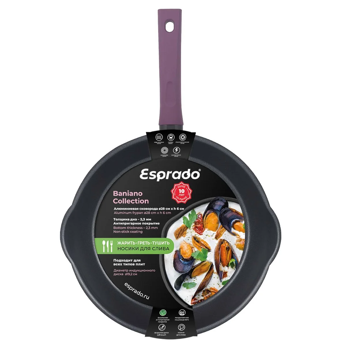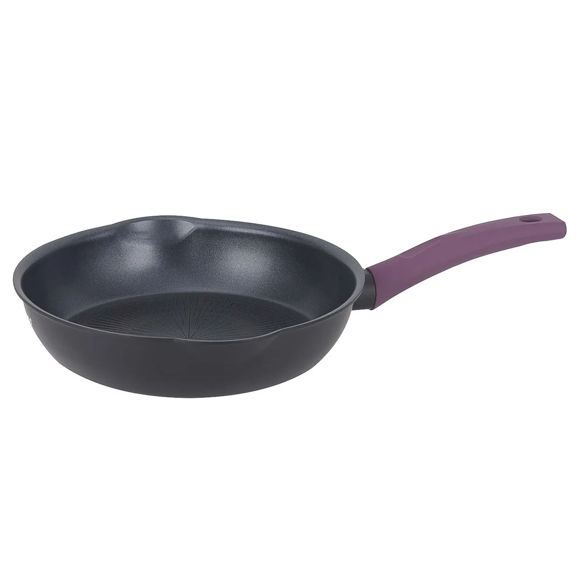 Коллекция сковород Baniano - это то, что поразит своим удобством! Высокие бортики, большая рабочая поверхность и носики для слива жидкости будут вам помогать в готовке. Двухслойное антипригарное покрытие Pfluon Cookmark порадует вас своей безопасностью, экологичностью и отсутствием вредной PFOA кислоты. Дно сковороды имеет рельефные полосы, благодаря которым масло при жарке будет распределяться равномерно, а при тушении появится эффект воздушной подушки. Продукты не будут пригорать. Сковорода окрашена в черный цвет, который надолго сохранит внешний вид, а ее ручка в темно-фиолетовый оттенок, напоминающий цвет баклажана. В коллекции сковороды диаметром от 18 до 28 см. Подходит для всех типов плит, в том числе индукционных. Можно мыть в посудомоечной машине.
