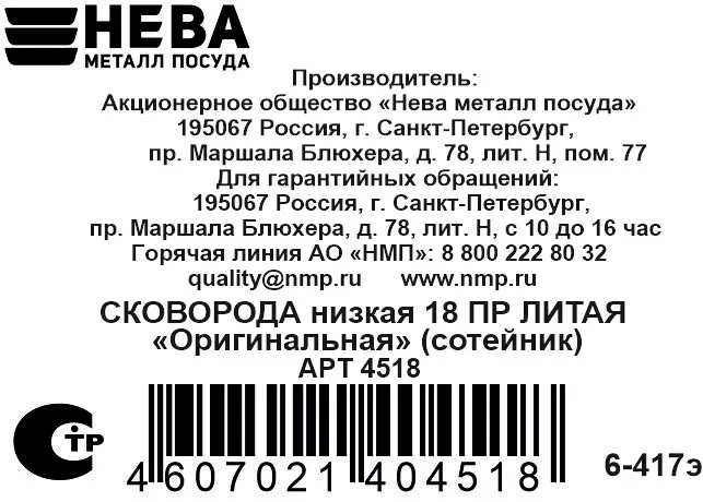 Оснащена антипригарным керамическим покрытием Excilon, обеспечивающим удобство при приготовлении и уходе за посудой.