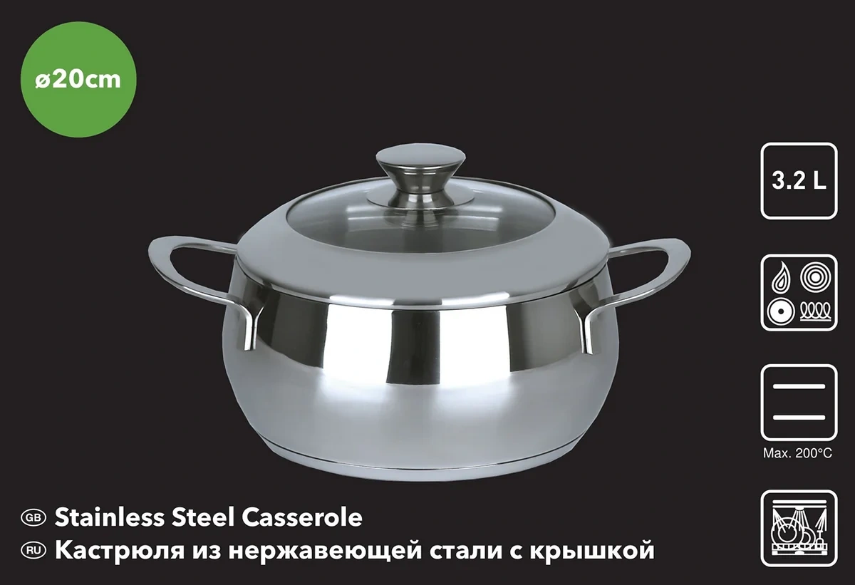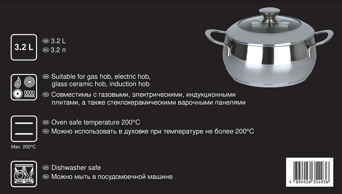 Подходит для всех видов плит, включая индукционные. Не рекомендуется мыть в посудомоечной машине и использовать в духовке.
