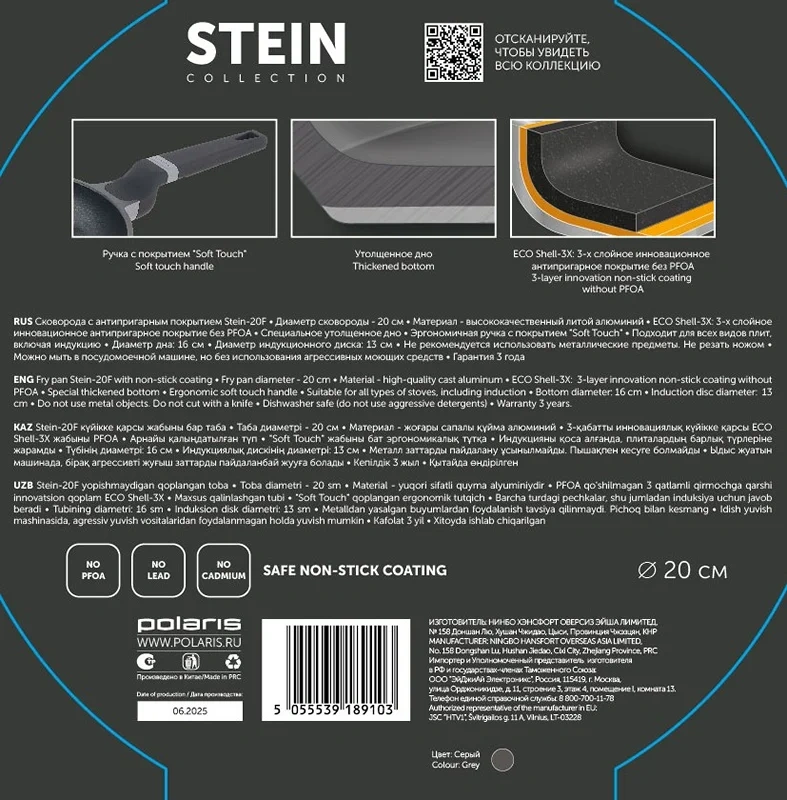 Коллекция из литого алюминия высокого качества. Материал - высококачественный литой алюминий.Удобная бакелитовая ручка с покрытием Soft-touch Внутреннее высокопрочное 3х-слойное антипригарное покрытие ILAG обеспечивает непревзойденную стойкость к царапинам.Специальное утолщенное дно 5мм обеспечивает быстрый и равномерный нагрев посуды. Экономия энергии и времени за счет высокой эффективности нагрева.Диаметр/размер: 20см.Подходит для всех типов плит, включая индукцию.Толщина стенок: 4мм.Толщина дна: 5мм.Гарантийный срок - 3 года; Индивидуальная упаковка - открытый картонный короб.