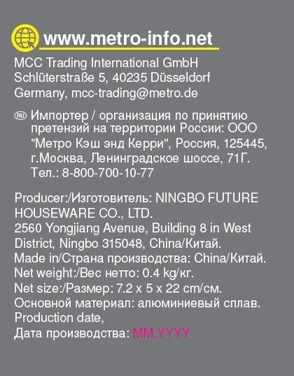 Габаритные размеры (Д x Ш x В): 25,5 x 19,5 x 5 см. Не рекомендуется мыть в посудомоечной машине.