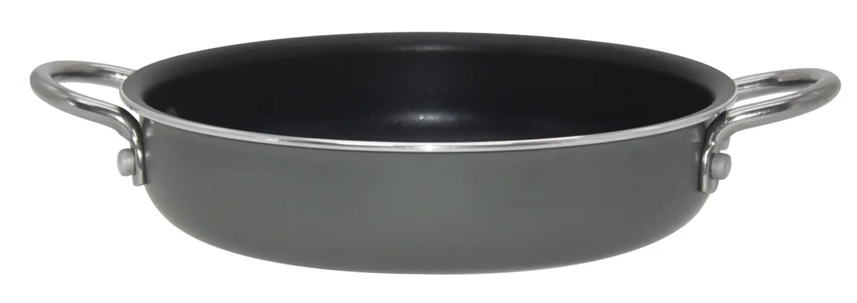 Сковорода с двумя ручками диаметром 20 см (внутренний диаметр 18 см, высота 4,5 см) марки Shakshuka предназначена для приготовления шакшуки и других блюд мировой кухни. Цвет изделия - серый. Толщина стенок составляет 2,5 см.
