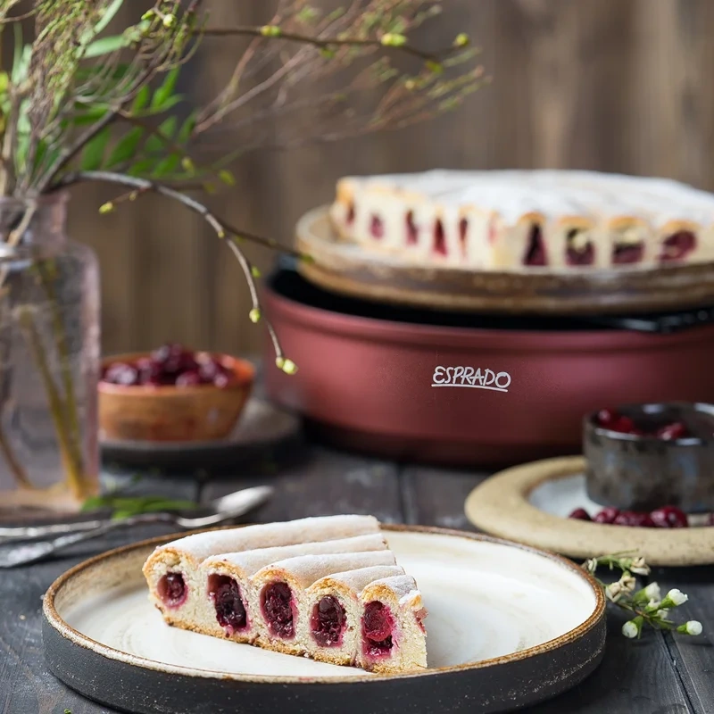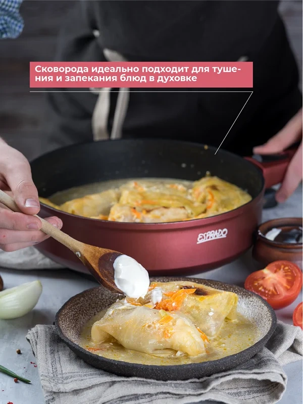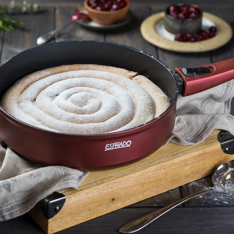 Сковорода со съемной ручкой Esprado Terceo, 28 см — это глубокая посуда 3 в 1 для приготовления разнообразных блюд домашней или ресторанной кухни. Модель выполнена из прочного алюминия, устойчивого к механическим нагрузкам, потертостям, царапинам. Материал хорошо противостоит перепадам температуры, воздействию влаги пыли, ультрафиолета. Кованый алюминий надолго сохраняет форму, не деформируется со временем, обеспечивает длительный срок службы. Толщина стенок сковороды составляет 2,5 мм, а обода — 4 мм. Такая конструкция позволяет равномерно распределять тепло и надолго сохраняет тепло приготовленных блюд. Внутреннее антипригарное покрытие: Whitford Eclipse имеет три слоя, которые предотвращают пригорание мяса, рыбных стейков, овощного рагу и другого. Модель идеально подходит для жарки мясных ребер, рыбного филе с золотистой корочкой. На ней получаются аппетитные жареные овощи и морепродукты в соусе, паста, блины, омлеты, картофельные драники и других блюд, требующих обжаривания или жарки на сковороде. Индукционное дно A type с фирменным штампом помогает достичь желаемой степени прожарки. Отдельного внимания заслуживает съемная бакелитовая ручка с покрытием soft touch. Она не выскальзывает из рук и обеспечивает надежный хват. Многофункциональную посуду 3-в-1 можно использовать в качестве сотейника и формы для запекания кексов, пирогов. Она подходит для приготовления ресторанных блюд в духовому шкафу и выдерживает высокие температуры до 230C. Благодаря съемной ручке и компактным размерам сковороду удобно хранить в кухонном шкафу, экономя место для других принадлежностей.