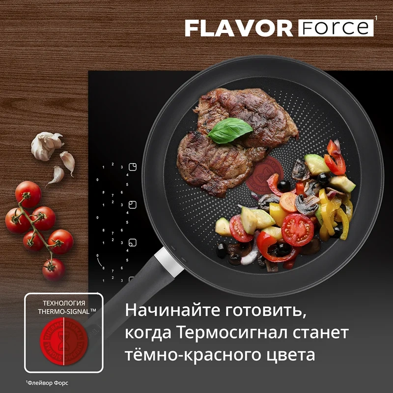 Сверхпрочная сковорода серии Flavor Force от Tefal гарантирует вам непревзойденный результат приготовления каждого блюда. Ее долговечное антипригарное покрытие позволяет готовить с комфортом и легко чистится, а корпус из кованого алюминия равномерно распределяет тепло, улучшая вкус и текстуру блюд. Сковорода оснащена уникальной технологией Thermo-Signal, которая показывает идеальное время для начала приготовления. Посуда совместима со всеми типами плит, включая индукционные.