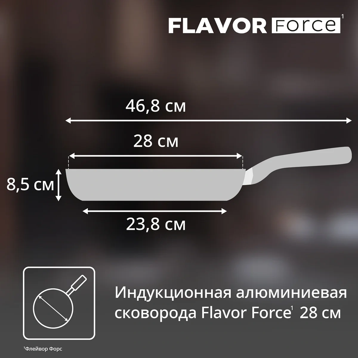 Сверхпрочная сковорода серии Flavor Force от Tefal гарантирует вам непревзойденный результат приготовления каждого блюда. Ее долговечное антипригарное покрытие позволяет готовить с комфортом и легко чистится, а корпус из кованого алюминия равномерно распределяет тепло, улучшая вкус и текстуру блюд. Сковорода оснащена уникальной технологией Thermo-Signal, которая показывает идеальное время для начала приготовления. Посуда совместима со всеми типами плит, включая индукционные.