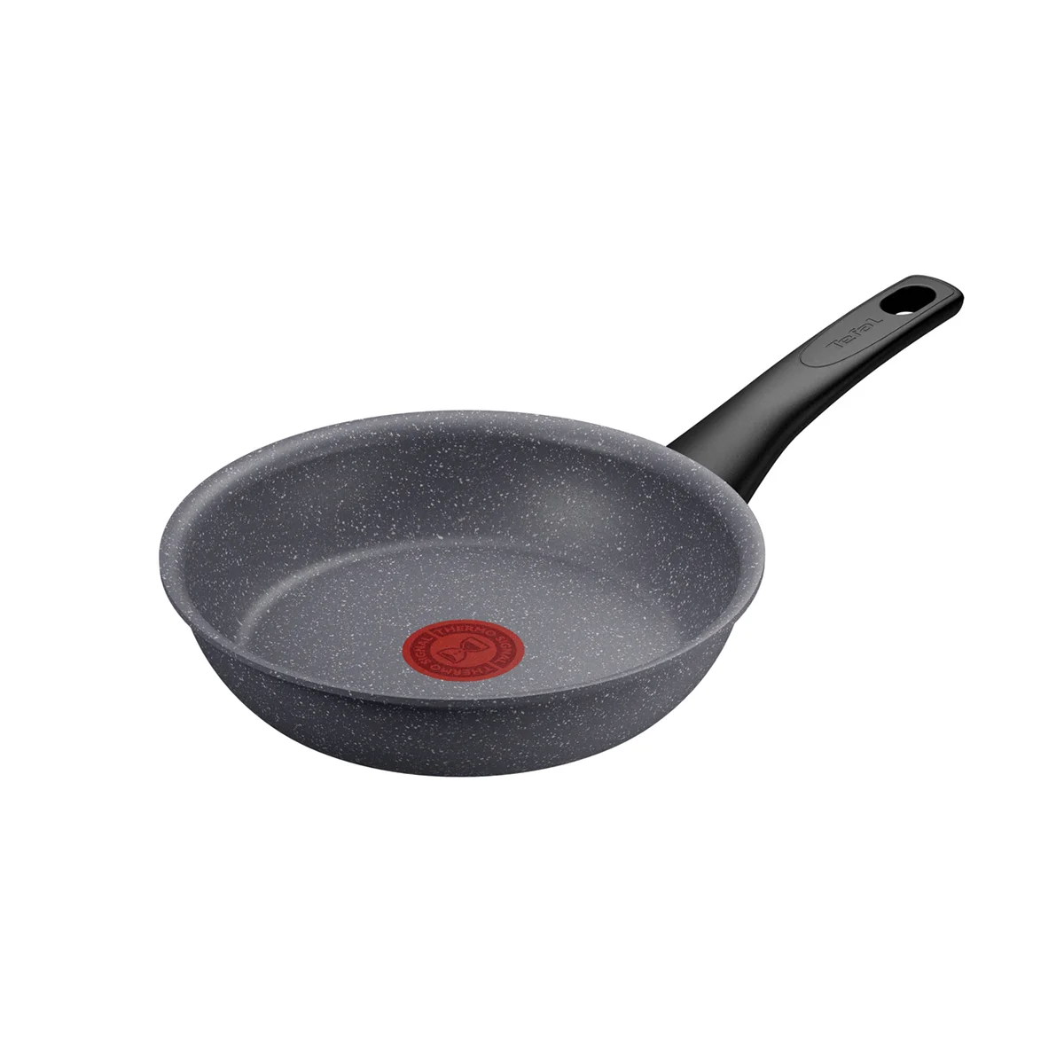 Сковорода Tefal Healthy Chef для индукционных плит, 20 см — отличное решение для вкусных завтраков и сытных обедов. На ней можно приготовить тонкие блины, панкейки, омлеты, яичницу с овощами, обжарить картофель, котлеты и даже кусок сочного стейка. Универсальная посуда подходит также для соусов, пасты, рагу или соте. Она обладает расширенным функционалом и практичностью. На сковороде Tefal Healthy Chef можно без труда жарить, тушить и даже пассеровать различные продукты. Ее диаметра 20 см достаточно для приготовления порций на 1-2 человек. Главной особенностью приспособления стало наличие ультрастойкого антипригарного покрытия Mineralia+, которое дополнительно усилено частицами натуральных минералов. На нем можно обжаривать кусочки куриного филе, говяжьи стейки без использования масла. Продукты не будут пригорать и прилипать к стенкам, сохранят все свои питательные свойства. В конструкцию сковороды встроен индикатор ThermoSignal, который помогает готовить блюда при правильной температуре. Качественное дно ThermoFusion обеспечивает равномерный нагрев и распределение тепла по всей поверхности. Прочный алюминиевый корпус уверенно противостоит влаге, пыли, ультрафиолету и воздействию высоких температур. При бережном уходе на нем не образуются ржавчина, следы от коррозии, сколы и потертости. Внешнее термостойкое покрытие предотвращает появление пятен и легко чистится с помощью влажной губки. Сковорода оснащается бакелитовой ручкой с soft-touch покрытием для комфортного использования. Она не нагревается и не выскальзывает из рук в самый ответственный момент. Посуду можно мыть в посудомоечной машине и не обязательно прятать в дальний кухонный шкаф. Сдержанный дизайн алюминиевой сковороды органично вписывается в любой стиль интерьера.