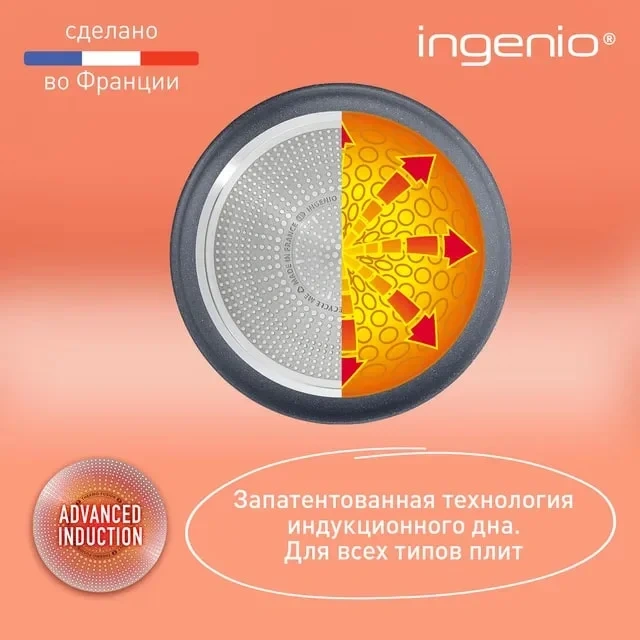 Индикатор нагрева Thermo-Signal меняет цвет, когда сковорода достигает идеальной температуры для начала приготовления, обеспечивая безупречное обжаривание. Сковорода совместима с газовыми, электрическими, керамическими, индукционными плитами и духовкой (кроме стеклянной крышки и ручек).