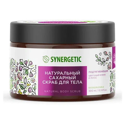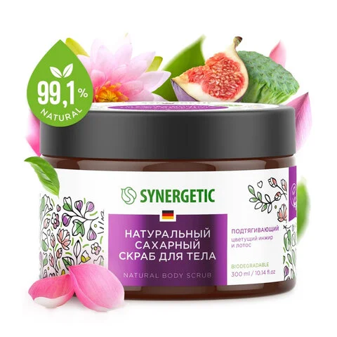 Скраб Synergetic Цветущий инжир и лотос, сахарный, 300мл