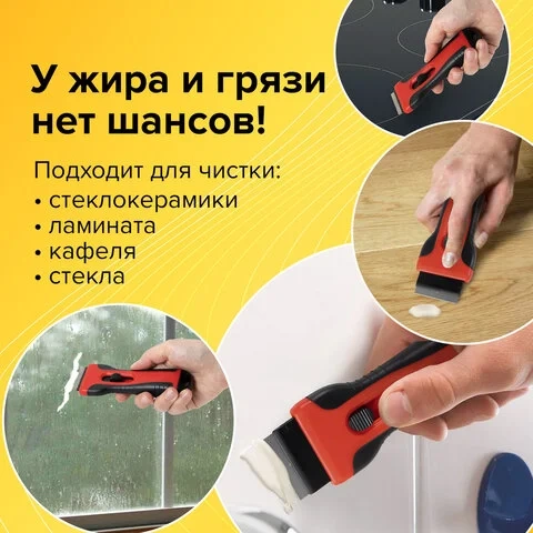 Скребок для любых поверхностей (керамика, стекло, плитка) BRAUBERG SMART CLEAN, 5 лезвий, 607457