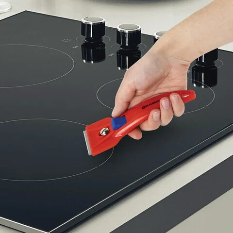 Скребок выполнен из прочного АBS-пластика. Ширина лезвия – 39 мм, длина лезвия – 20 мм. Это идеальный помощник для бережного и эффективного удаления с плоских и гладких поверхностей (стекло, плитка, керамические плиты, ламинат и ламинированные поверхности) свежих или застарелых загрязнений от жира, смолы, жевательной резинки, битума или краски.