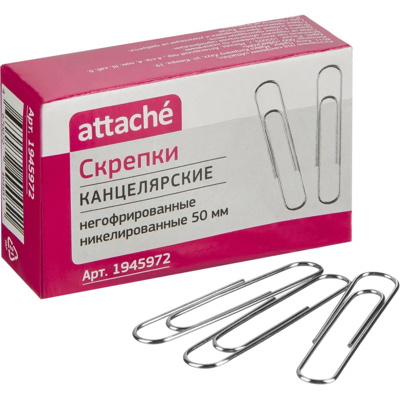 Скрепки Attache никелированные 50 мм, негофрированные, 50шт/уп