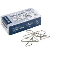Скрепки канцелярские, с никелированным покрытием. Скрепки имеют форму «бабочки», размер 32Х38 мм. Скрепки идеально подойдут для скрепления большого количества документов, при этом скрепка не разъезжается. В картонной упаковке 20 штук.