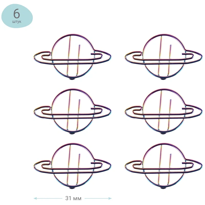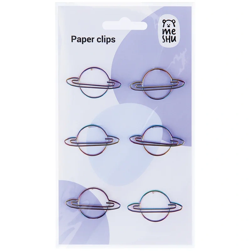 Скрепки фигурные 31мм, Meshu 'Planets', 6шт., пакет с европодвесом