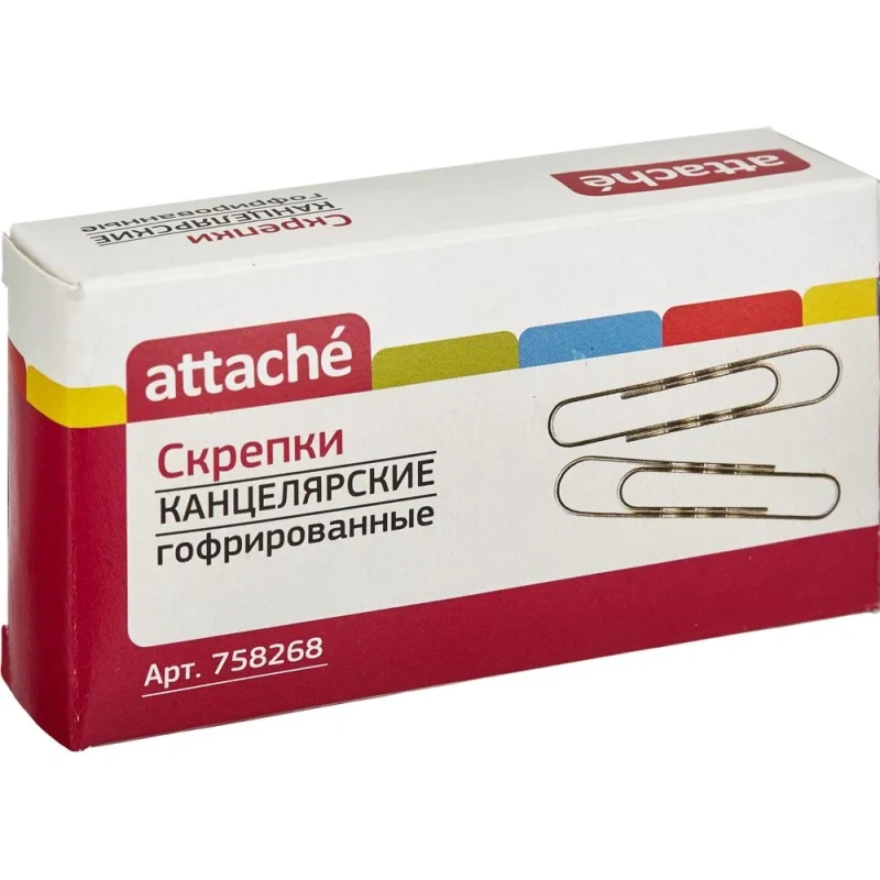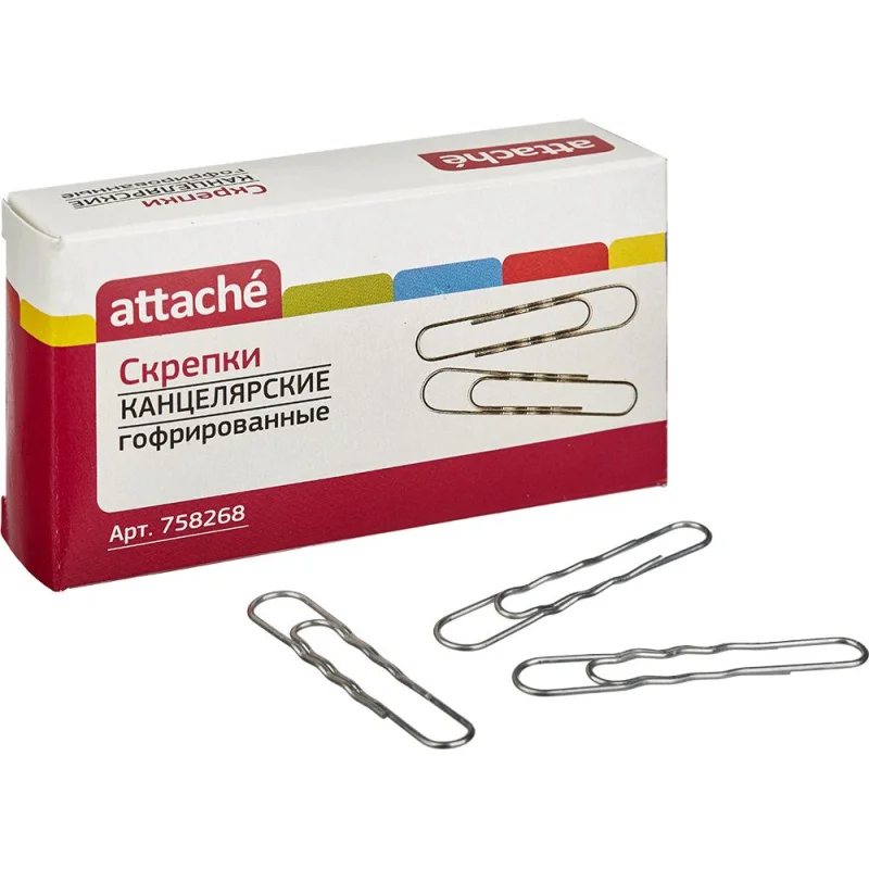 Скрепки Attache незаменимы при работе в офисе или дома, когда нужно соединить несколько бумаг, например, все листы договора или другие важные документы. Металлические с цинковым покрытием гофрированные. Имеют закругленную форму, что позволяет надежно скреплять документы. Длина 75 мм. В упаковке 40 скрепок. В промежуточной упаковке 72 упаковок по 40 скрепок.