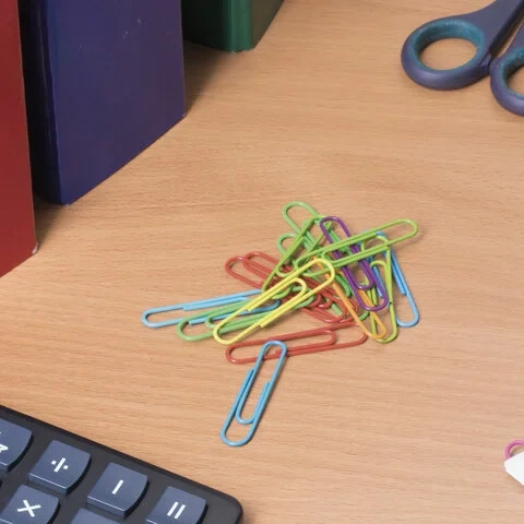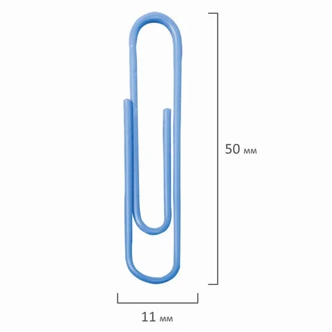 Большие скрепки изготовлены из стали, имеют классическую овальную форму и цветное пластиковое покрытие. Длина скрепки составляет 50 мм. Не окисляются и не повреждают документы. 50 штук в картонной коробке.