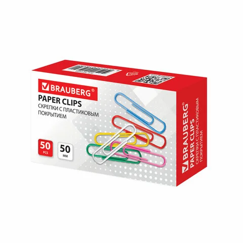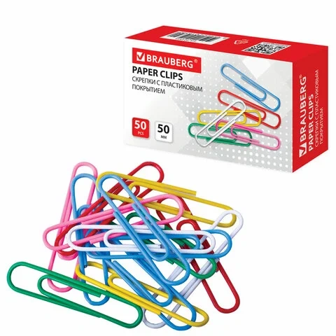 Скрепки канцелярские Brauberg 50мм, цветные, 50шт/уп
