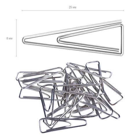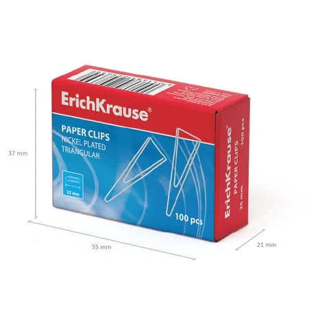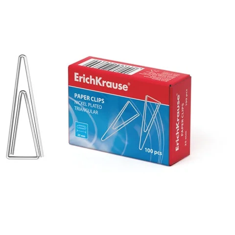 Скрепки канцелярские Erich Krause 25мм, треугольные, никелированные, 100шт/уп, 24869
