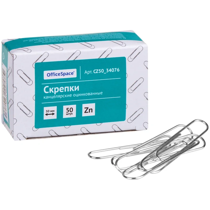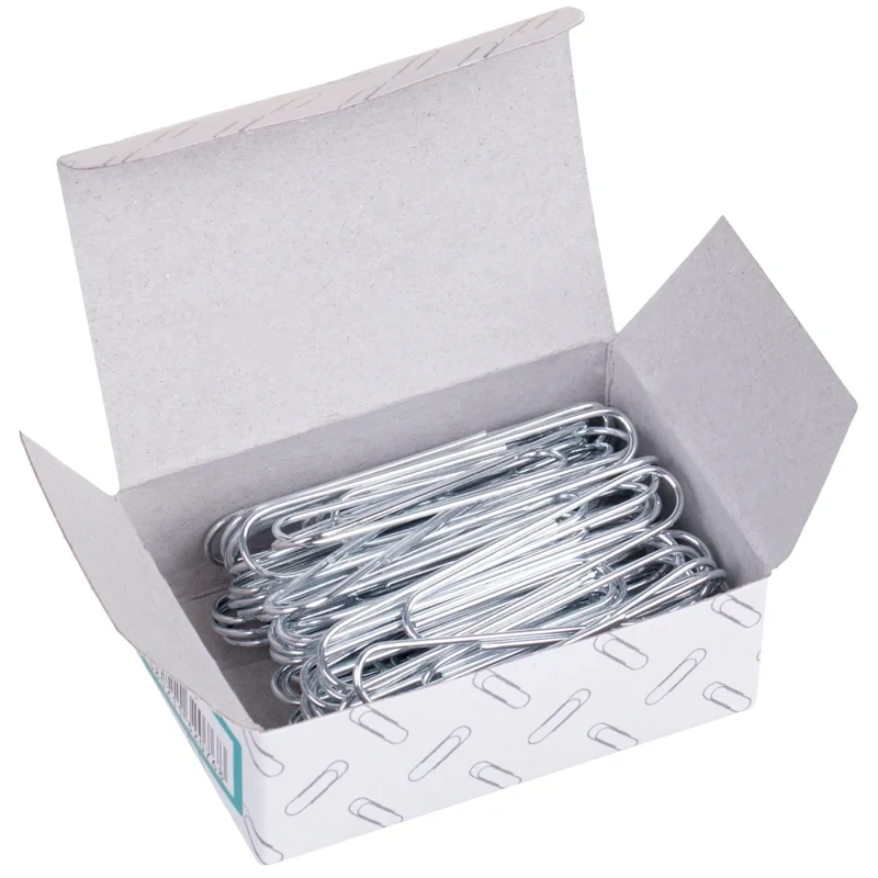 Металлические канцелярские скрепки. Гладкие, оцинкованные, стандартной формы. Надежно скрепляют документы, не деформируют бумагу. Размер скрепки - 28 мм. Упаковка в картонную коробочку по 100 шт.