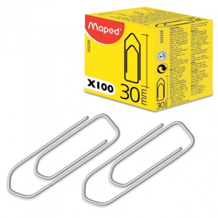 Скрепки канцелярские Maped 30мм, стрелка, никелированные, 100шт/уп