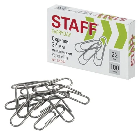Скрепки канцелярские Staff 22мм, металлические, 100шт/уп