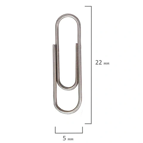 Скрепки изготовлены из стали, имеют классическую овальную форму. Длина скрепки составляет 22 мм. Не окисляются и не повреждают документы. 100 штук в картонной коробке.
