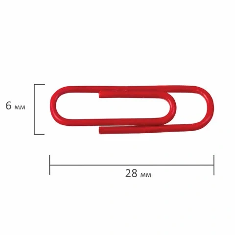 Скрепки изготовлены из стали, имеют классическую овальную форму и цветное пластиковое покрытие. Длина скрепки составляет 28 мм. Не окисляются и не повреждают документы. 70 штук в картонной коробке.